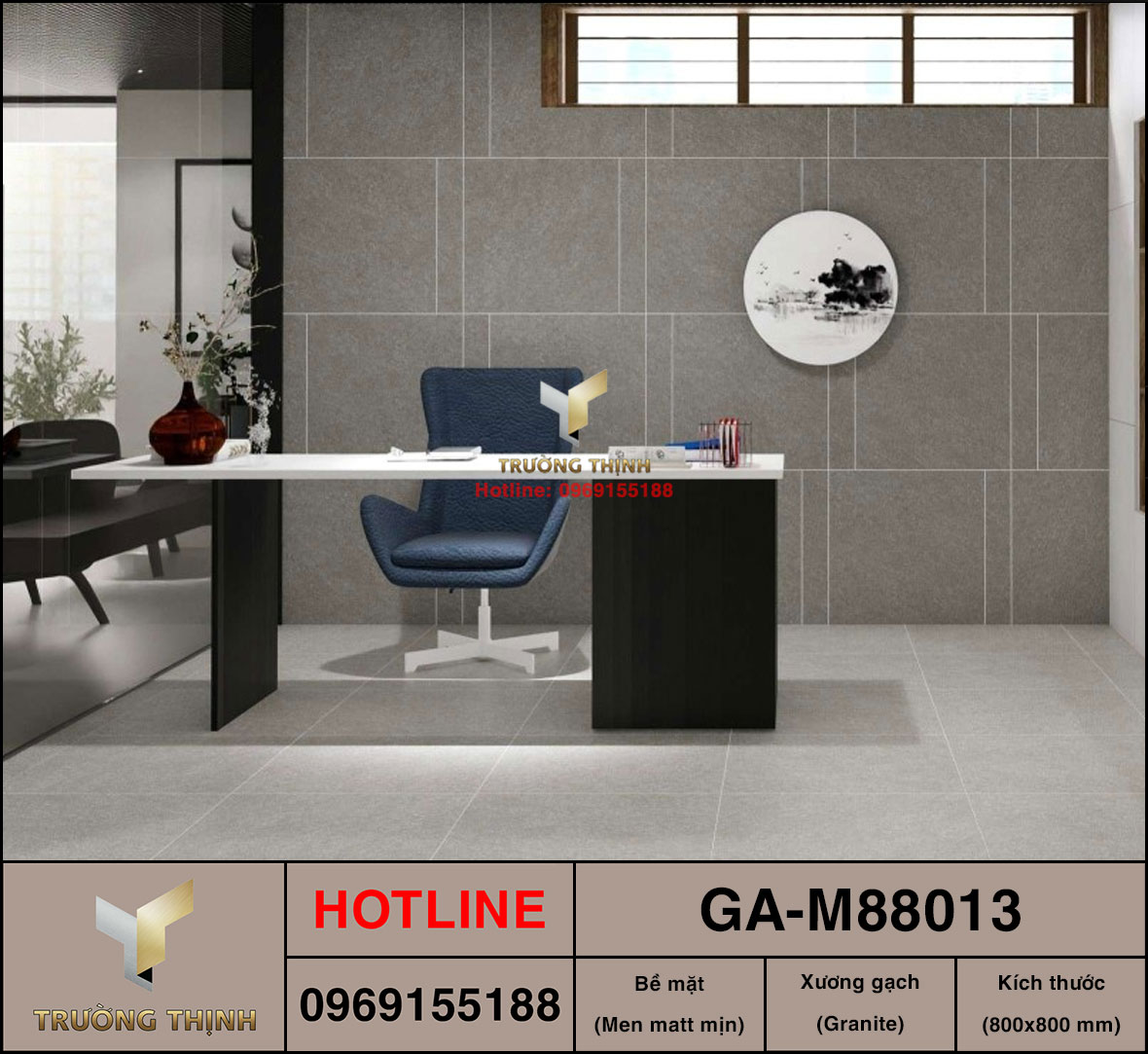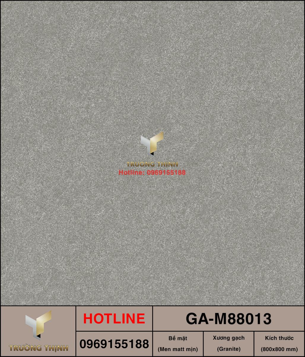 Với họa tiết vân đá tự nhiên và tone màu xám sang trọng, gạch GA-M88013 mang lại vẻ đẹp tinh tế và hiện đại cho không gian. Bề mặt men Matt khắc kỹ thuật số giúp tăng tính thẩm mỹ và độ bền cho sản phẩm.