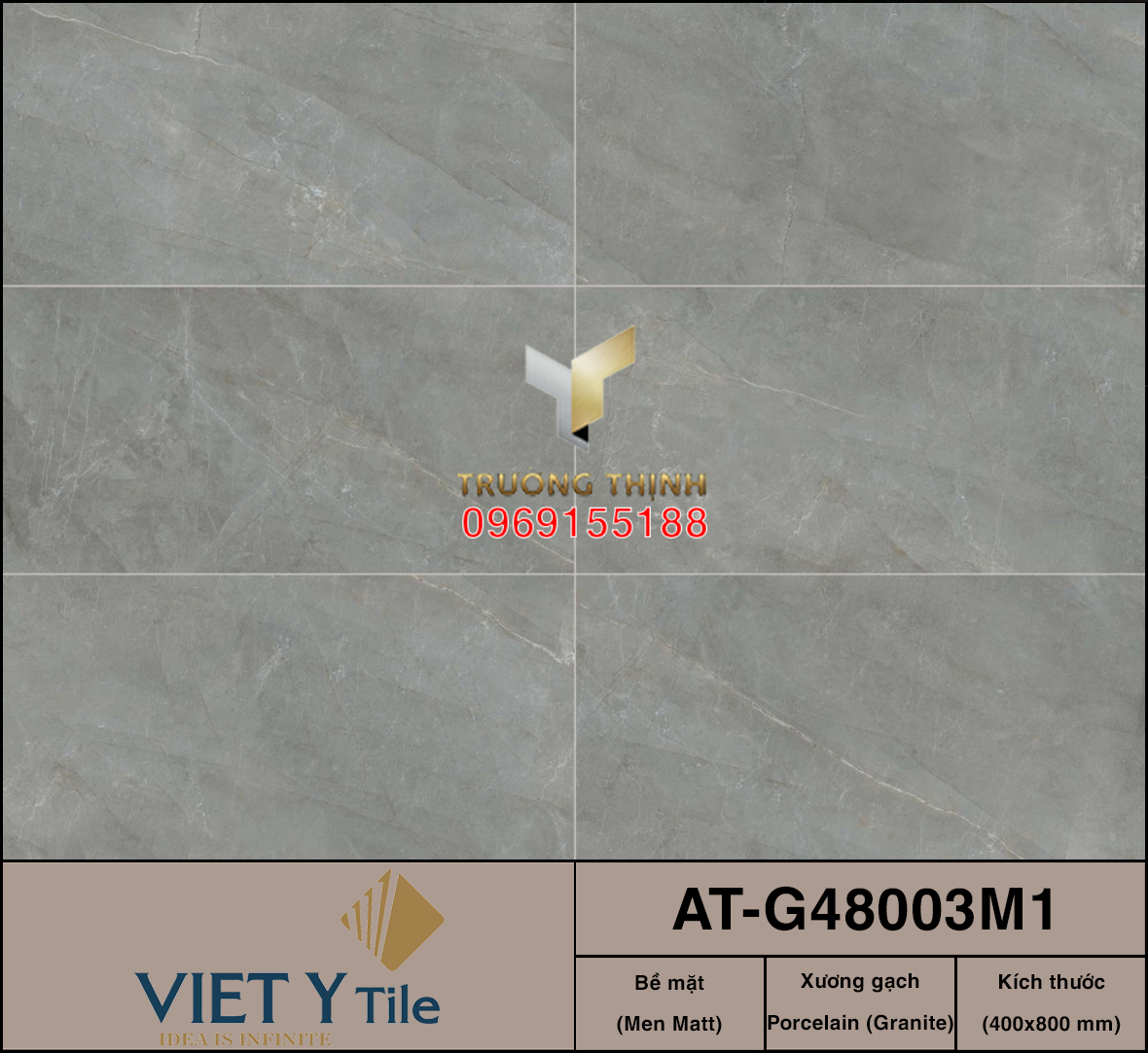 Hiện nay trên thị trường có nhiều đơn vị cung cấp gạch ốp lát, tuy nhiên Trường Thịnh Group tự hào là đơn vị phân phối chính hãng các sản phẩm gạch Việt Ý, trong đó có mẫu Gạch ốp lát vân đá Marble màu xám 400x800 Việt Ý AT-G48003M1.