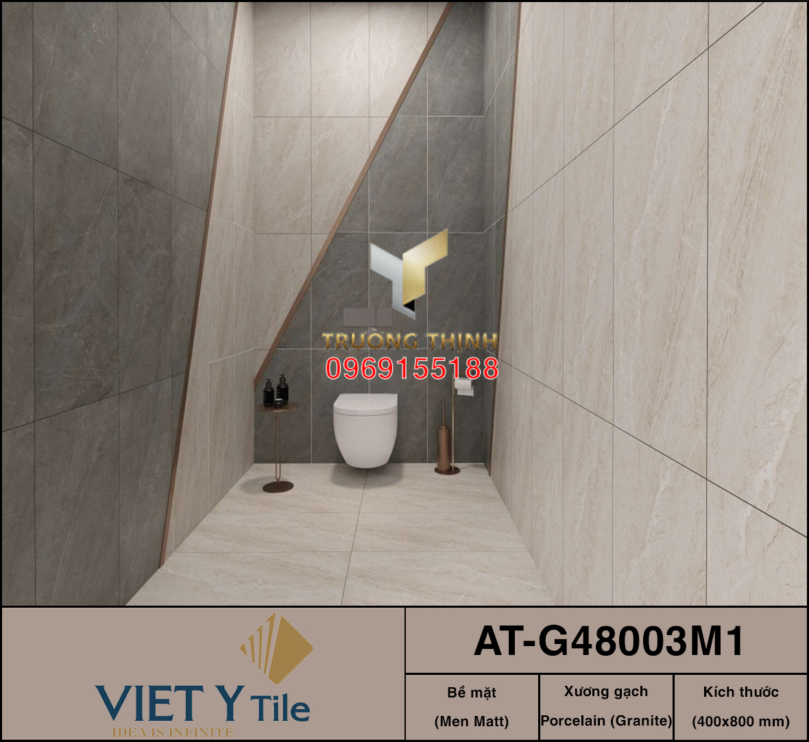 Với kích thước 400x800mm, đây là kích thước "vàng" dễ dàng ứng dụng cho cả việc ốp tường và lát nền, tạo nên sự liền mạch và mở rộng không gian một cách hiệu quả. Sự xuất hiện của AT-G48003M1 không chỉ đơn thuần là vật liệu xây dựng mà còn là một món đồ "trang sức" nâng tầm đẳng cấp cho công trình.