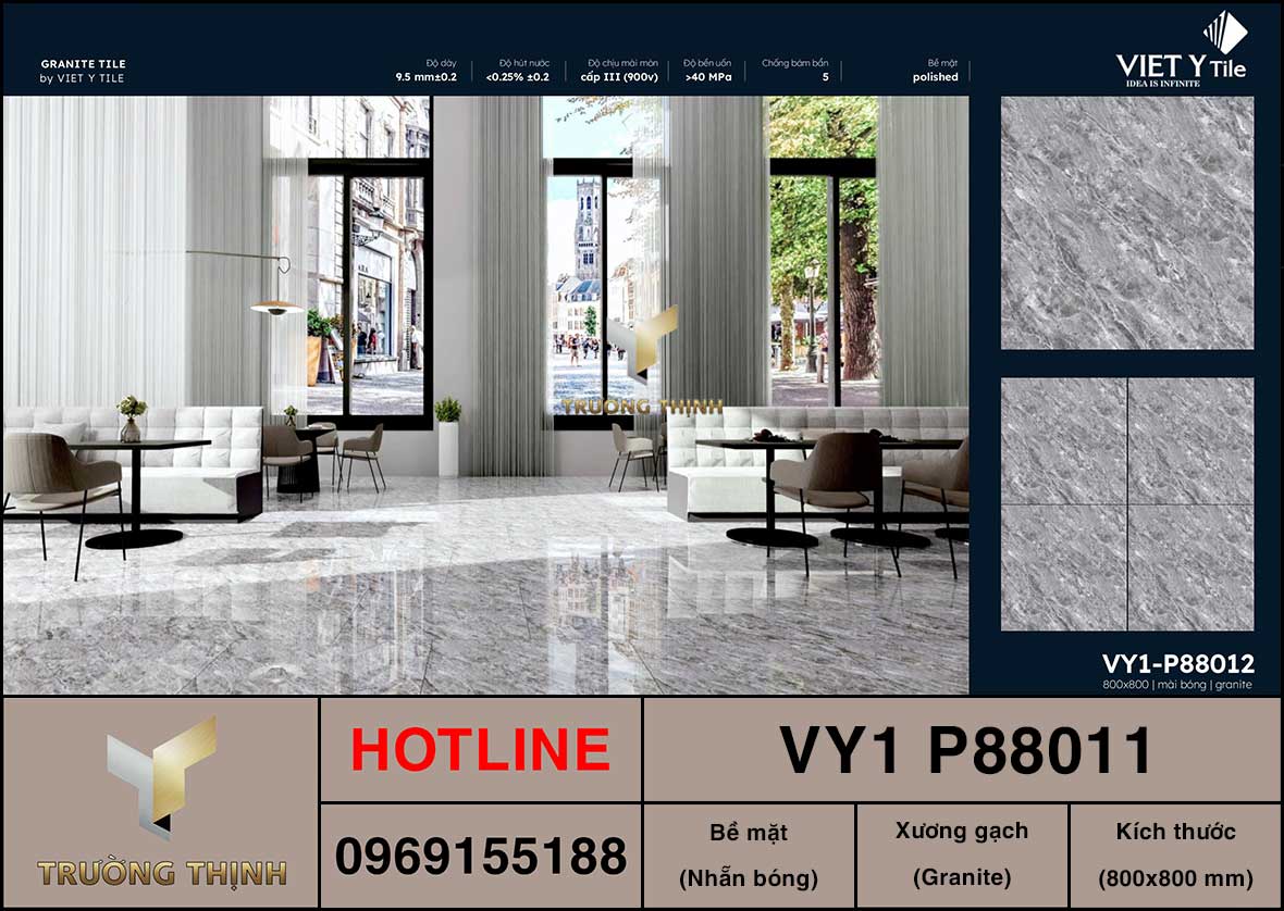 Để xem mẫu gạch Việt Ý VY1 P88012 hay mua được sản phẩm gạch Việt Ý VY1 P88012 chính hãng với giá tốt nhất, quý khách vui lòng liên hệ với các đại lý phân phối Gạch Việt Ý trên toàn quốc hoặc liên hệ ngay với Trường Thịnh để được tư vấn và nhận báo giá tốt nhất cho sản phẩm Gạch Granite Muối Tiêu 800x800 Việt Ý VY1 P88012!