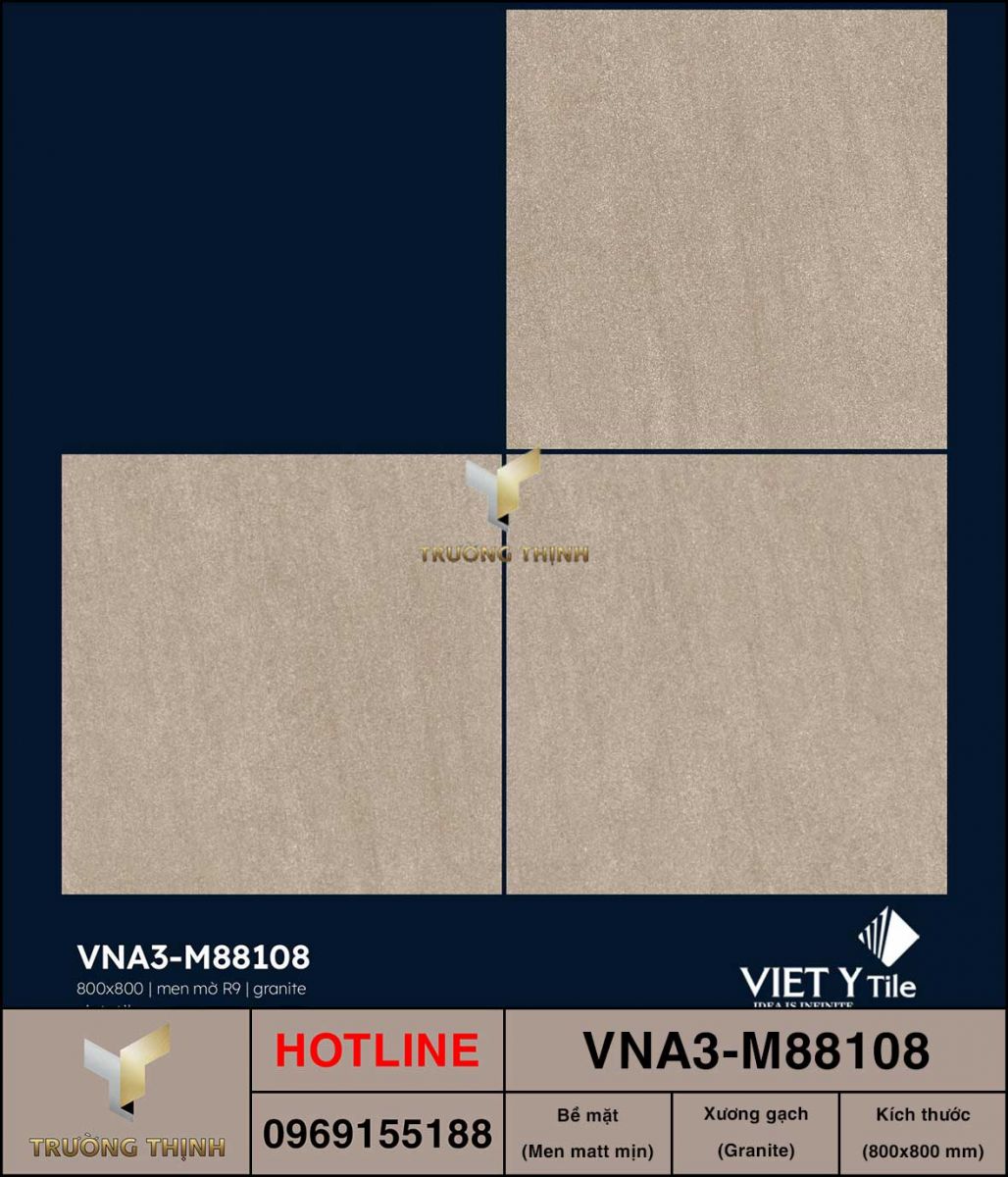 Gạch 800x800 Việt Ý VNA3-M88108 là sự lựa chọn lý tưởng cho những ai tìm kiếm một loại gạch lát nền vừa đẹp, vừa bền và an toàn. Với thiết kế hiện đại, chất lượng vượt trội và tính ứng dụng cao, sản phẩm này chắc chắn sẽ mang đến sự hài lòng cho bạn.